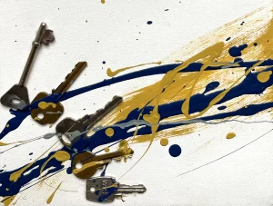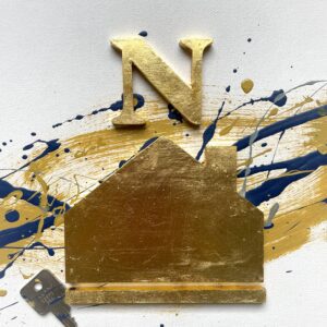 In keeping with our colours, she used rich blue and gold-yellow tones with the N at the centre, which stands out beautifully. She also embellished the canvas, and having worked in an office dealing with properties, she was aware of the importance of keys, and this was an integral part of the project.
